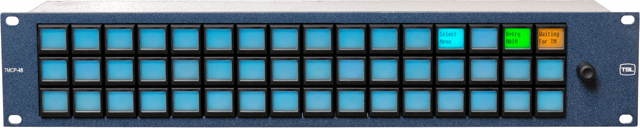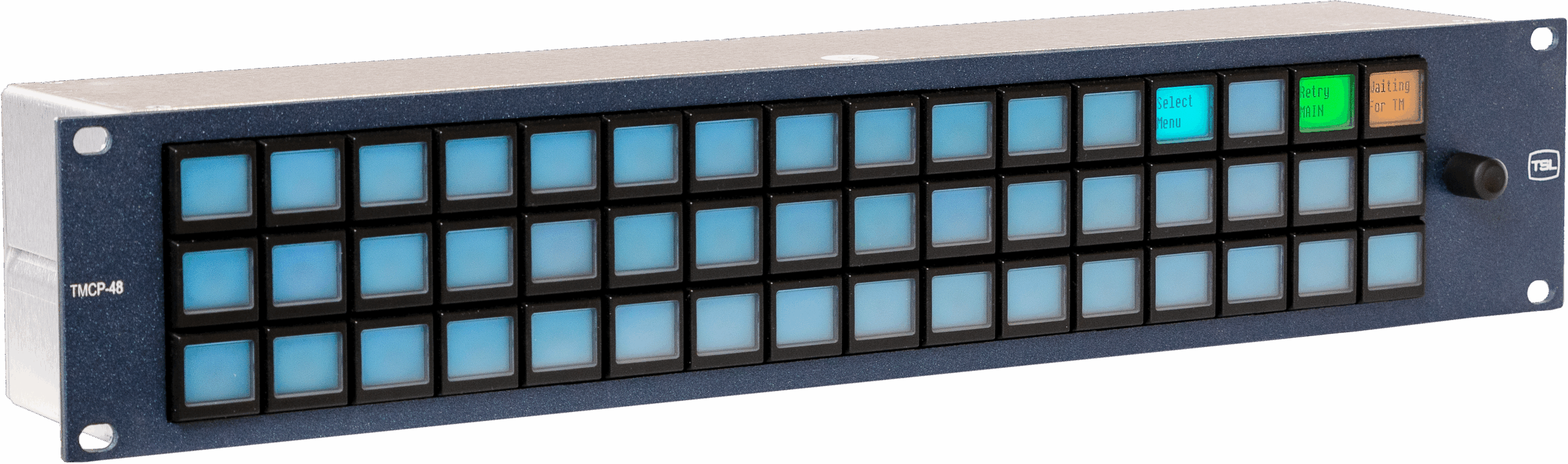 2RU TallyMan Control Panel (TMCP) Control Panel with 48 TFT user-definable push buttons. TSL’s range of control panels allows compact system-wide control. Each button is an LCD screen capable of displaying 16 characters or customised bitmaps.